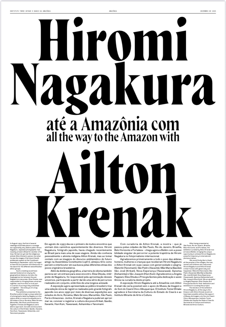 2023年秋のブラジル・サンパウロ市開催から、リオデジャネイロ、ブラジリア、ミナジェライス、フォルタレザへ巡回された長倉洋海写真展『アマゾンへ アユトン・クレナックとともに』(原題:Hiromi Nagakura até a Amazônia com Ailton Krenak)。